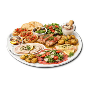 Antipasti Zucchini, Paprika, Champignons, rote Zwiebeln,