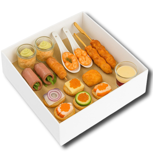 Canapé mit Surimi „Amerikanischer Art“ auf Lachs Kaviar